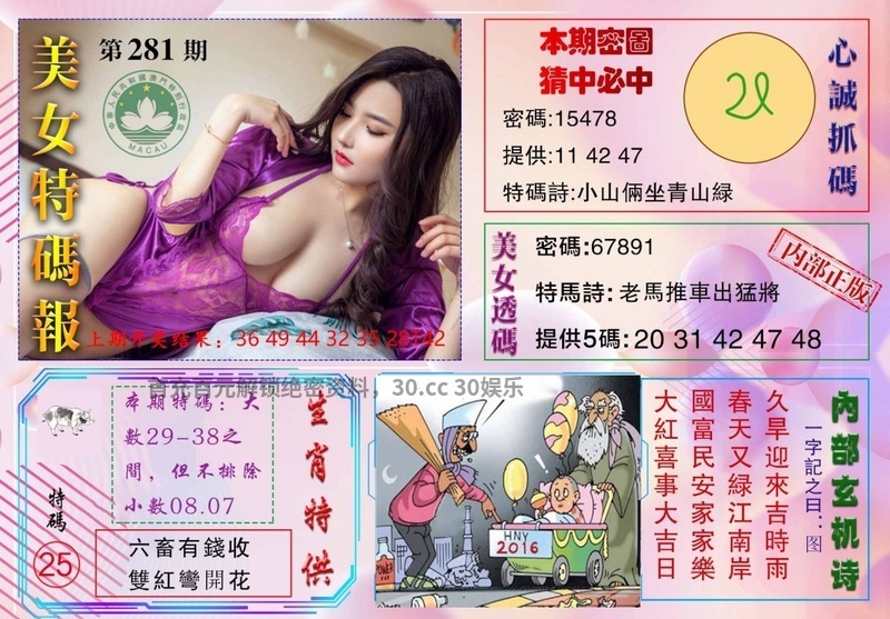 281期:〖稳中七肖〗羊猴马狗牛猪虎 |